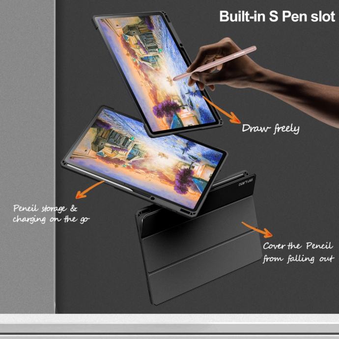 Na poklopcu su izrezi za priključke i kameru, a zahvaljujući tehnologiji buđenja i uspavljivanja uređaja možemo osigurati nešto duži vijek trajanja baterije.