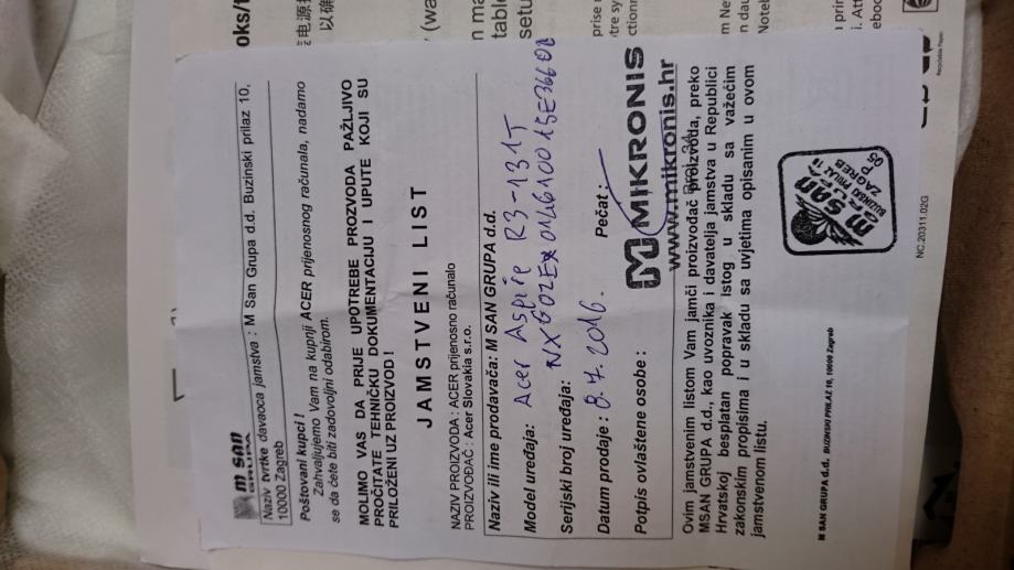 • Jamstvo: 24 mjeseca fizičke osobe / 12 mjeseci pravne osobe