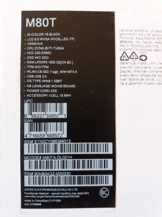 Model: Asus VivoTab Note 8; M80TA