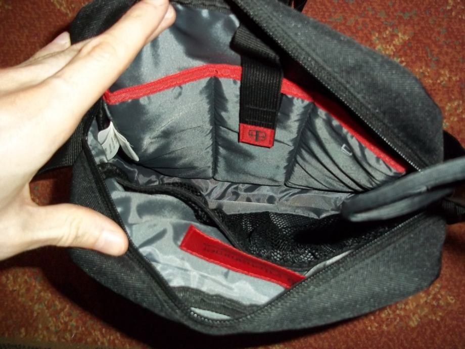 Izrađena je od 600D poliestera, zapremnine 4L, visina 27cm, dužina 22cm, širina 7cm. Torba se sastoji od dva pretinca - prednjeg i glavnog. U glavnom se nalazi i zaštitni odjeljak sa vezicom za smještanje tableta, također ima odjeljak za smještaj manjih stvari i odjeljak za smještaj manjih notesa. Torba je nekorištena i nova, skinuta je jedino ceduljica s logom firme.