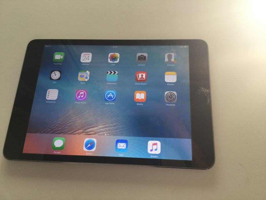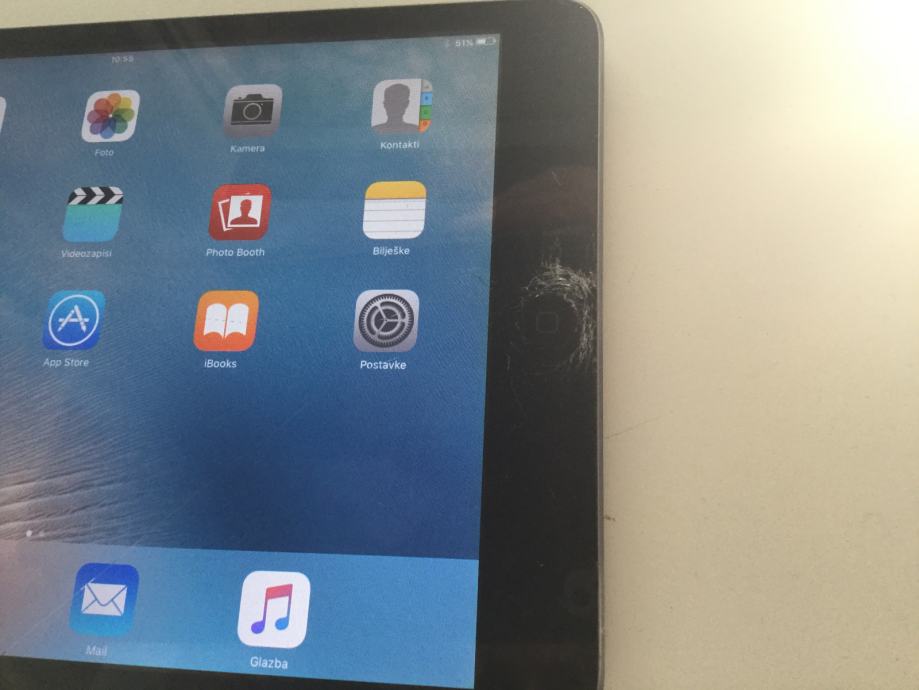 Baterija odlična, gotovo ne korišten, izvrstan. Staklo je puklo uz gumb, gumb normalno radi kao i cijeli ekran, potrebno zamjeniti samo staklo, n i tablet se i ovakavmože se koristiti.