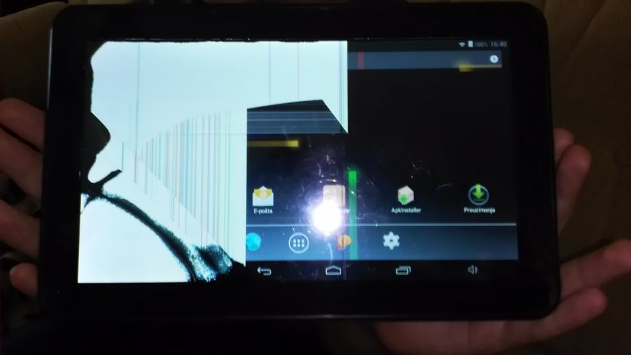 Meanit Tablet Android, 10 inča, quad core, 16:9 touch screen, razlijano pola ekrana,touch radi,staklo cijelo i Hema h8 tablet 20cm duljine,ne radi. Za dijelove oba tableta ako nekome treba.