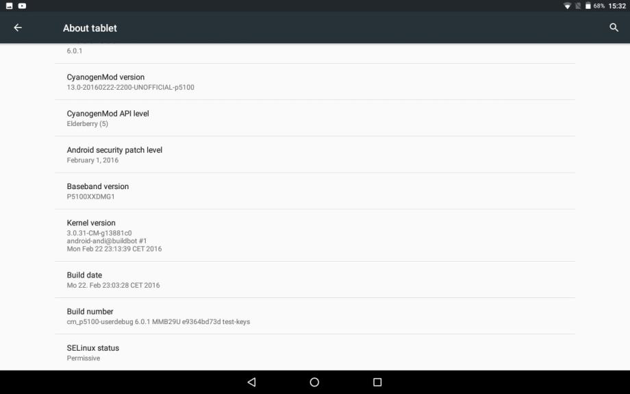 Tablet je Root otkljucan sa PhilZ Touch 6 custom recovery i instaliranim Cyanogenmod 13 software-om Android verzije 6.0.1. (Tvornicki 4.2.2).