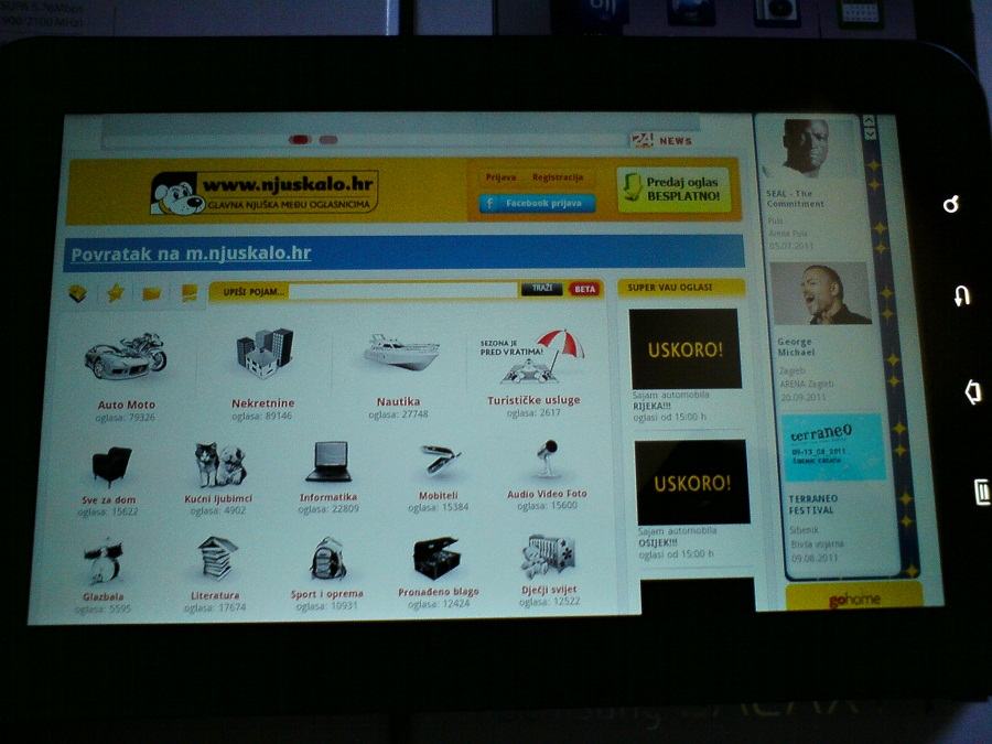 Android Market sa mnoštvom raznih aplikacija, mogućnost čitanja dnevnih tiskovina (Večernji, 24 sata..) preko Press Readera