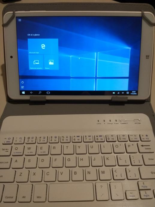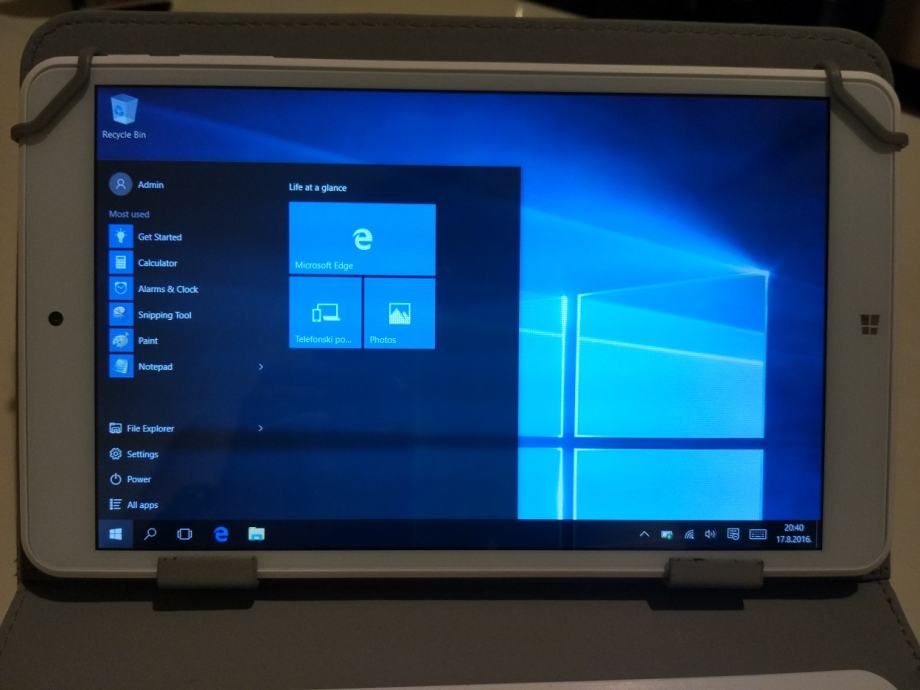 Na tabletu je instaliran Windows 10, ostalo je cca 3GB slobodnog prostora na particiji, uz tablet ide i SD kartica kapaciteta 8GB i OTG kabel.