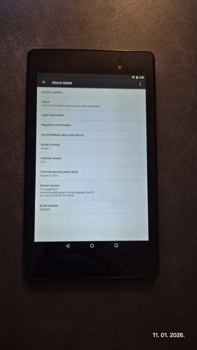 Korišten i očuvan tablet Asus Nexus 7. Resetiran na početne postavke. Bez punjača. Jedino je na jednom kantunu malo okrznut (vidi sliku), ali je neprimjetno.