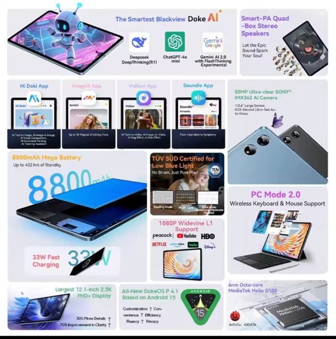 Prodajem Blackview MEGA 3 AI tablet, potpuno nov, korišten samo kratko za provjeru ispravnosti.