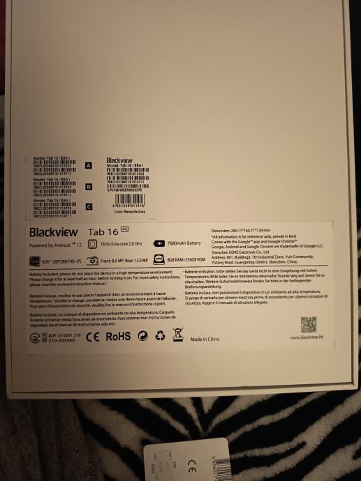 Prodajem rabljeni Blackview tablet Tab 16 s 8+256GB RAM memorije. Uređaj je u dobrom stanju, ima odličan zaslon i dolazi u originalnom pakiranju. Tablet je pokretan Android sustavom i idealan je za svakodnevno korištenje, bilo za zabavu ili posao.