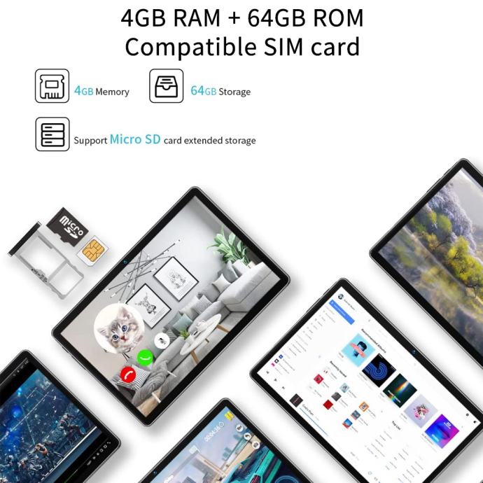4G large RAM to keep system running properly. Also 64G ROM can fully support all your apps and media needs.