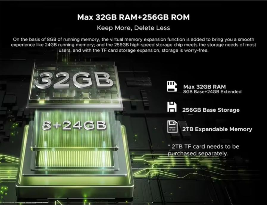 RAM / Memorija: 32 GB RAM (8 GB + do 24 GB virtualno) + 256 GB