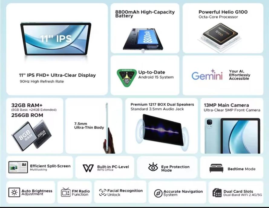 DOOGEE Tab E3 – NOVO, Android 15, 32GB RAM / 256GB