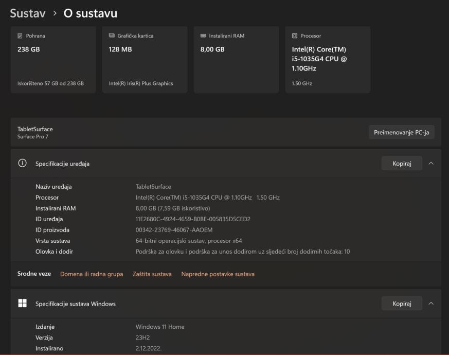 Microsoft Surface Pro 7 12,3″, Intel i5-10.gen, 8 GB RAM-a, 256 GB