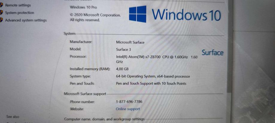 Microsoft Surface3:Intel Atom x7-Z8700,4gb ram,64gb hdd,10.3LCD,okvara