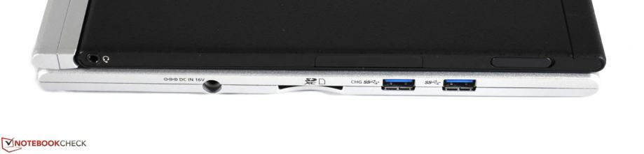 lijevo: combined audio (on the tablet), SD card slot, 2 x USB Type-A 3.0, NanoSIM-Slot (on the tablet)