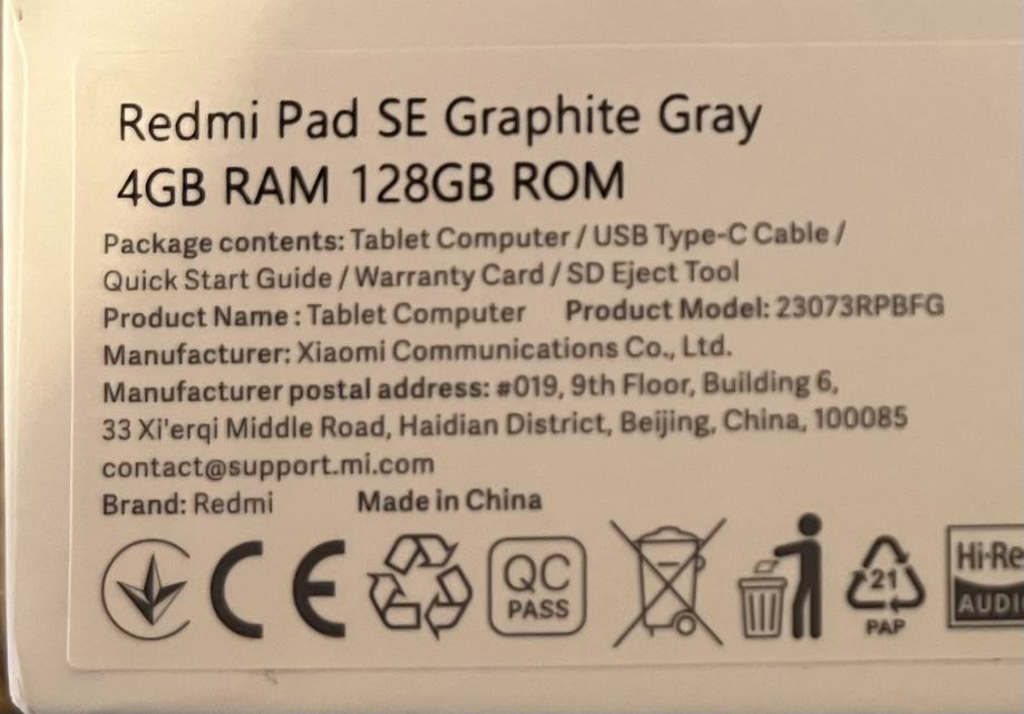 Prodaje se RedmiPad SE Graphite Gray 4GB RAM, 128 GB ROM, novi zapakiran (neotvoren)