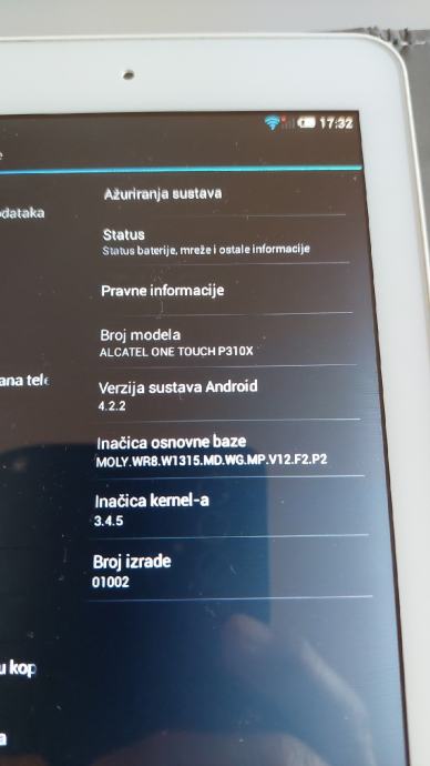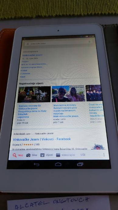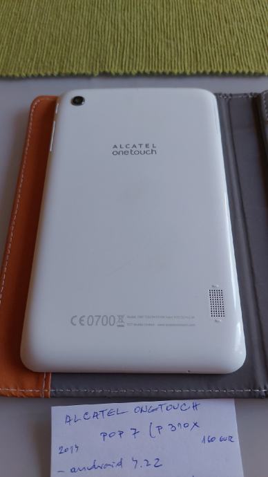 7 inch tablet Alcatel OneTouch POP 7/P310x/,android 4.2.2, 2 MP, 1 GB RAM/2 GB,GPS,SIM,micro SD utor,3240 nAh.Ako netko treba tablet prvenstveno kao auto navigaciju.Zbog zastarjelog androida neke poznate aplikacije ne rade-Trg.Play,YouTube.Staklo je neizgrebano.Sa futrolom.