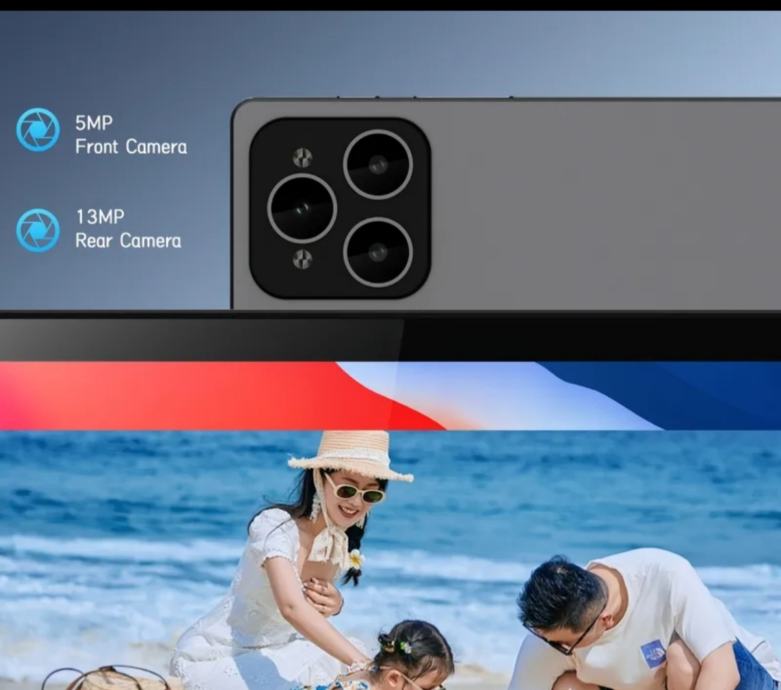Tablet je opremljen s 13MP stražnjom kamerom i 5MP prednjom kamerom. Sive je boje s elegantnim dizajnom i tankim okvirom oko zaslona.