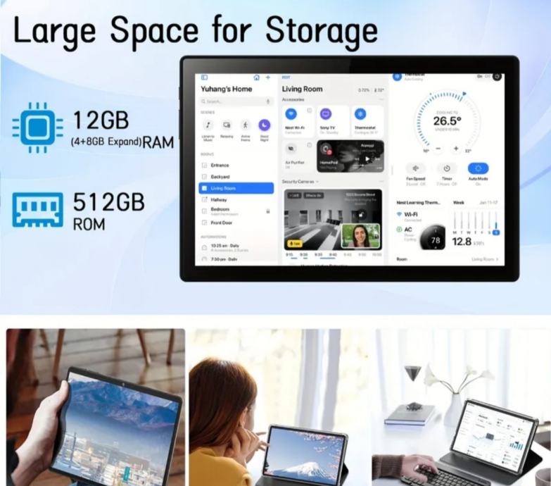 Prodajem nov Crelander tablet s Android 13 operativnim sustavom. Uređaj ima 12GB RAM memorije (4+8GB prošireno) i 512GB interne memorije. Podržava 5G WiFi i 4G LTE mobilnu povezivost.