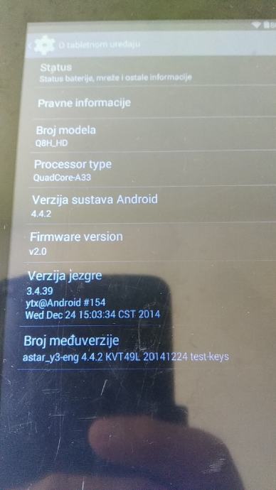 Tablet Q8H_HD,7 inch,quad core,android 4.4.2,zaštitna folija na ekranu.Ima nepoznat problem kod izrade google računa.