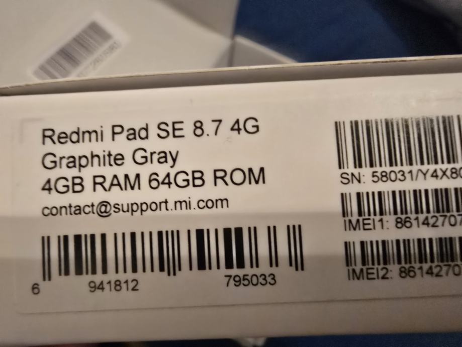 Prodajem potpuno novi, u kutiji, zapakirani, neotvarani (sa sigurnosnim naljepnicama) Xiaomi Redmi Pad SE 8.7 4G 4Gb/64Gb