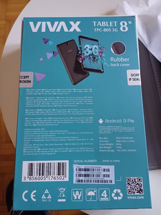 Prodajem tablet Vivax TPC805 3G, 8" ekran, korišten jako malo, uz tabled poklanjam preklopnu futrolu.