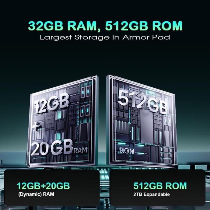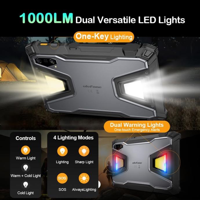 Robusni, vodootporni tablet, 5G Android 15, 1000LM 2x kampersko svjetlo, 24200mAh baterija 120W brzo punjenje, 11" FHD+ 90 Hz ekran, do 32GB (12+20GB) RAM + 512GB interne memorije, 64MP + 64MP IR noćna kamera, NFC/Face ID/3,5 mm priključak/3 utora...
