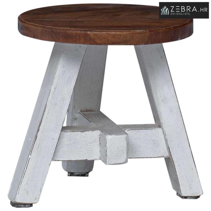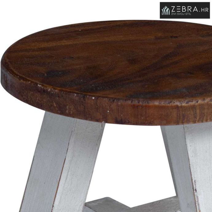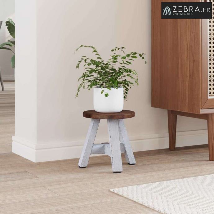 Ova stolica bez naslona pruža rustikalnu eleganciju spajajući prirodne materijale s teksturiranim završetkom, savršena je za svaki udoban prostor. Njena kompaktna veličina i bezvremenski dizajn omogućavaju joj lako uklapanje u različite stilove dekoracije, pružajući funkcionalnost uz estetsku privlačnost. Njena šarmantnost poziva te da zamisliš kako bi bila središnji dio udobnog kutka dnevnog boravka ili kutka za čitanje, gdje može poslužiti kao praktično mjesto za sjedenje ili lijep ukras.