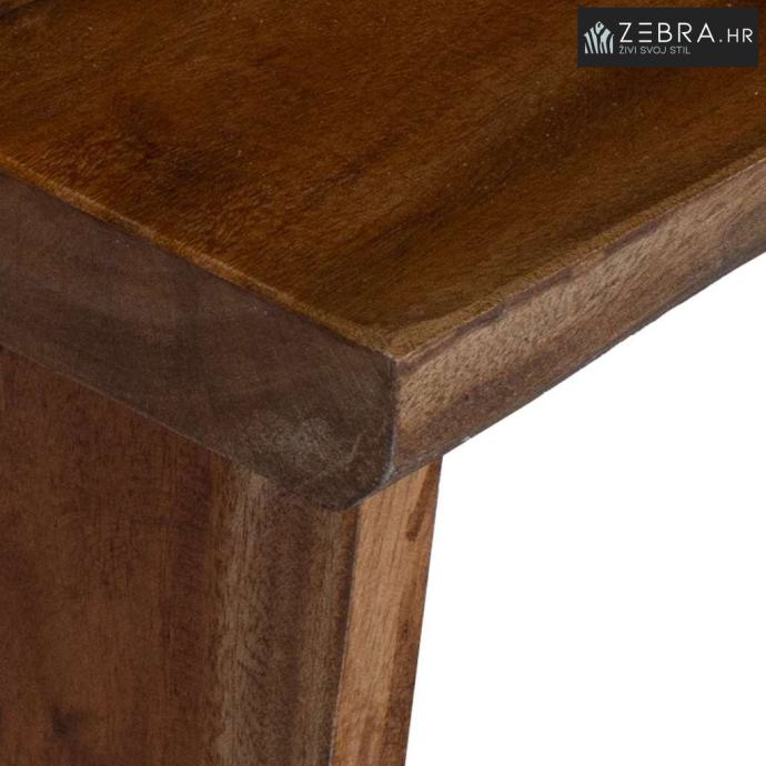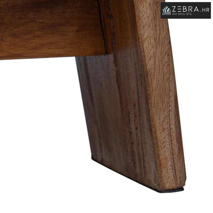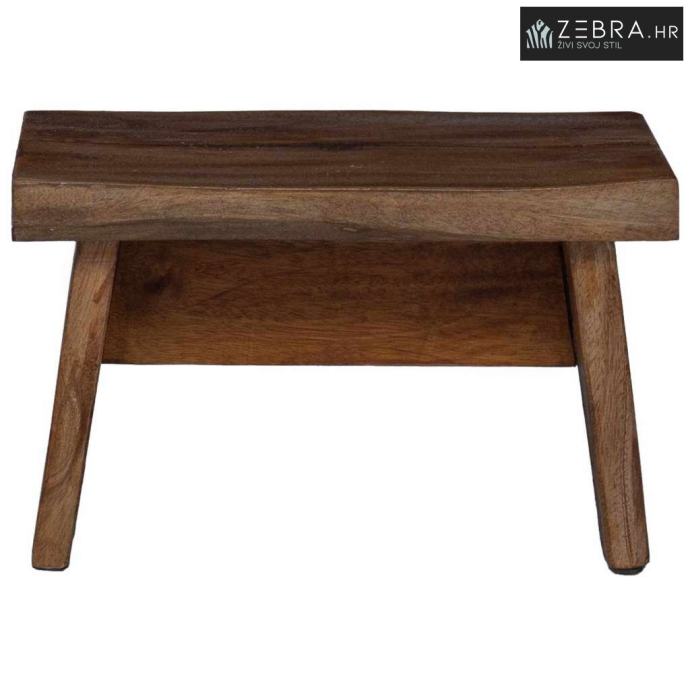 Ovaj mali stolac je savršena stvar za sve koji žele dodati dašak rustikalnog šarma u svoj dom. S jednostavnim i elegantnim dizajnom, lako će se uklopiti u svaku prostoriju. Izrađen je od kvalitetnog masivnog mahagonijevog drva, poznatog po svojoj ljepoti i čvrstoći, što ga čini pogodnim za unutrašnju i natkrivenu vanjsku upotrebu. Tekstura drva poziva vas da osjetite njegov prirodni rub, donoseći toplinu i karakter vašem prostoru. Koristite ga kao dodatno sjedište ili dekoraciju; rustikalni stil ovog stolca čini ga bezvremenskim komadom.