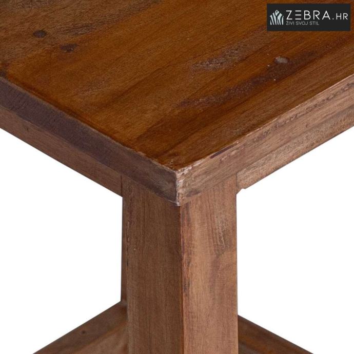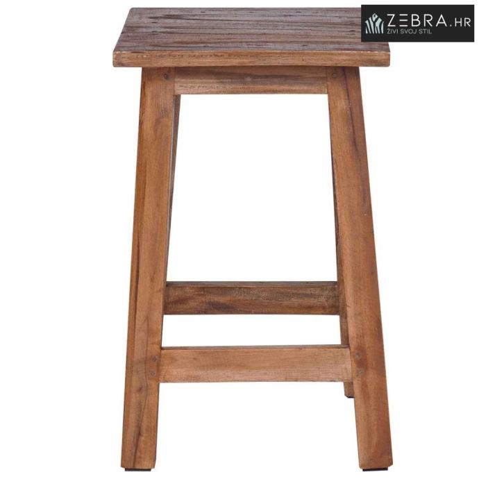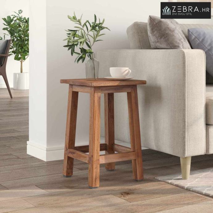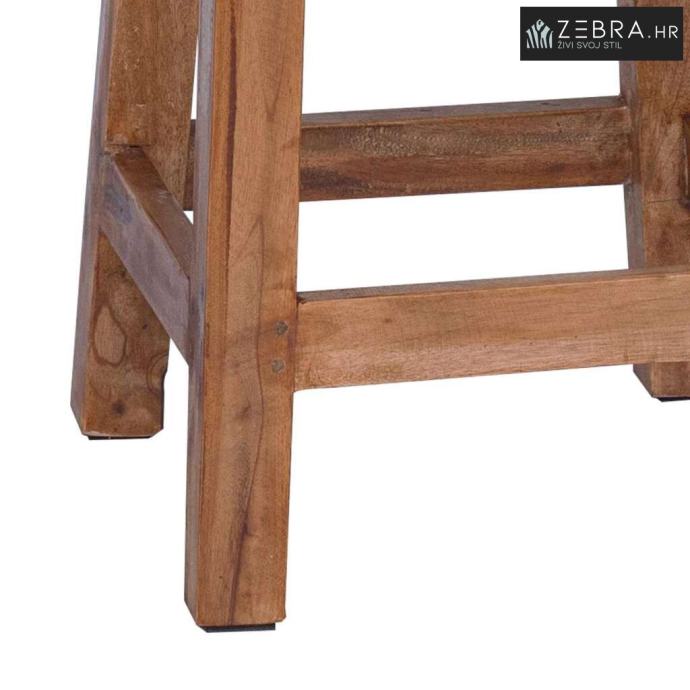 Ova stolica bez naslona je bezvremenski komad koji spaja funkcionalnost i rustikalni stil. Izrađena od masivnog mahagonijskog drveta, njezin prirodni izgled i topla vibra čine je savršenim dodatkom za dnevne boravke ili zaštićene vanjske prostore. Nema naslon što omogućuje lakše aranžmane sjedenja i prilagodbu oko drugog namještaja.