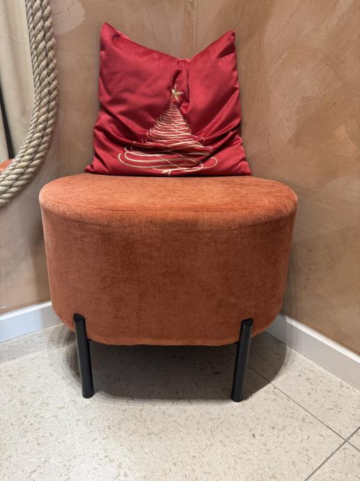 Prodajem tabure / malu fotelju u toploj narančasto-smeđoj boji, s crnim nogicama.