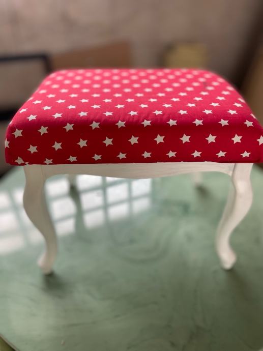 Stari stolac/tabure, ručno tapeciran i ofarban u bijelo