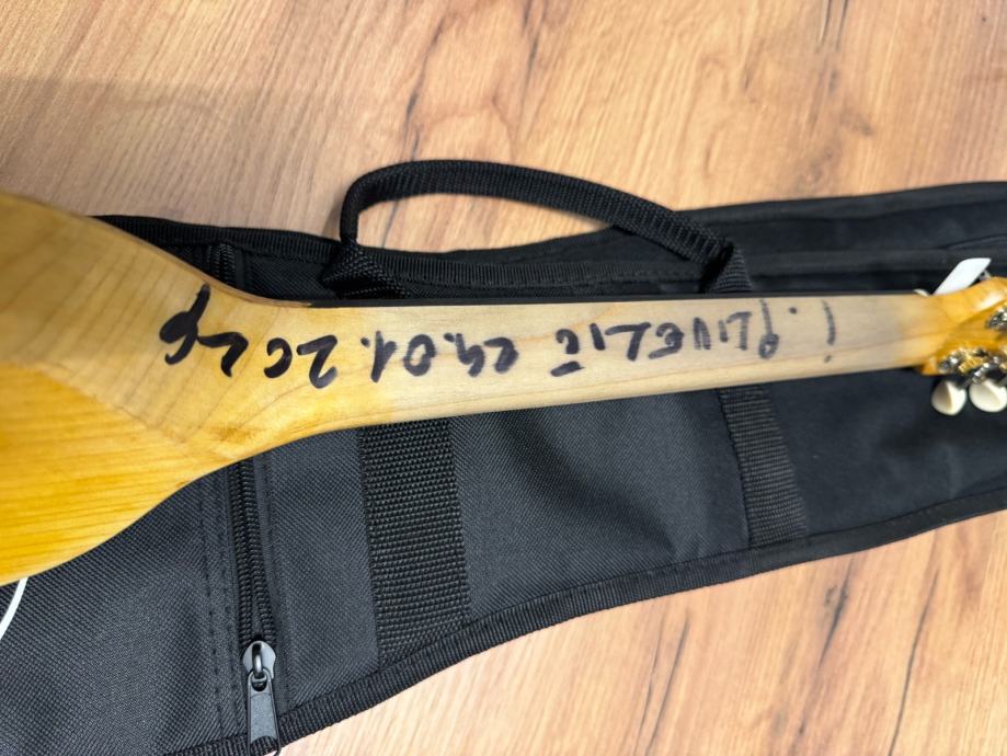 E prim na svome vratu ima potpis Miroslava Škore i velikog hrvatskog tekstopisca i pjevača Ivice Plivelića koji su ga također i svirali.