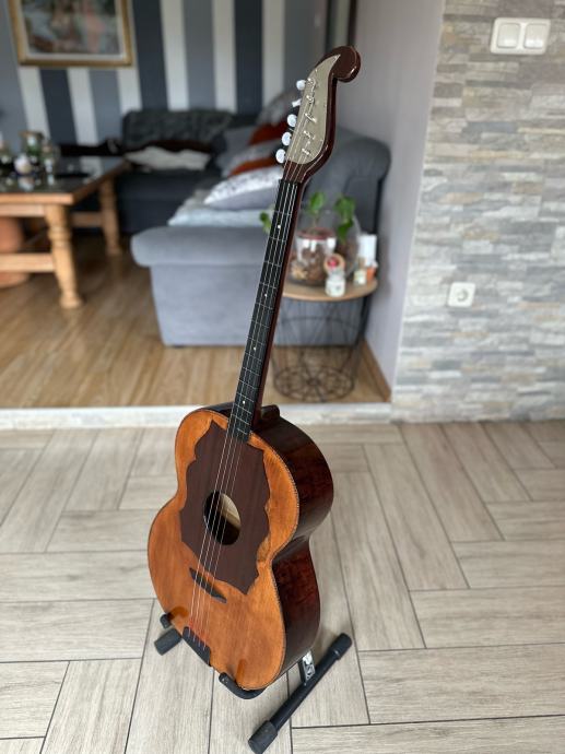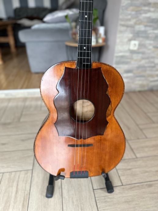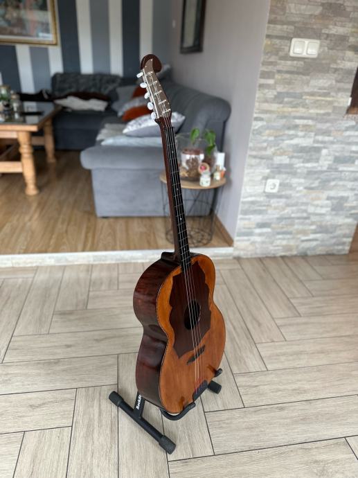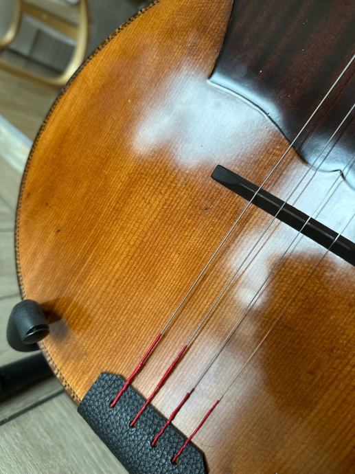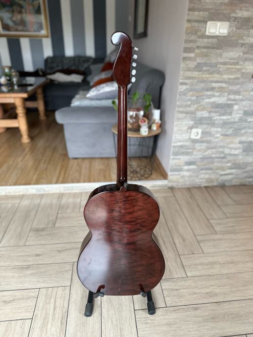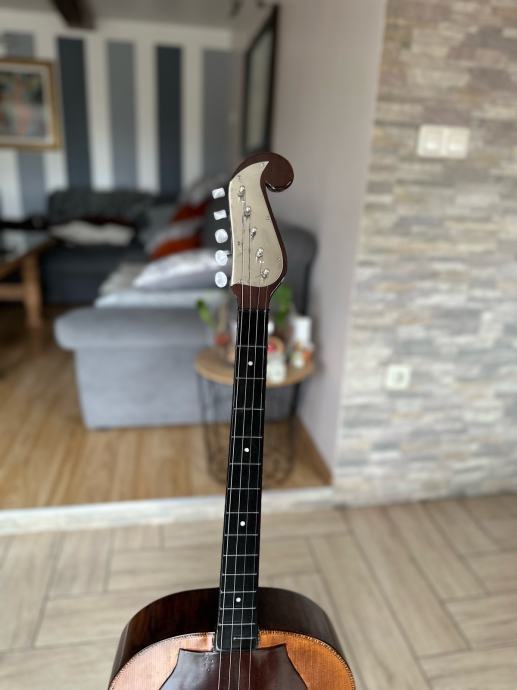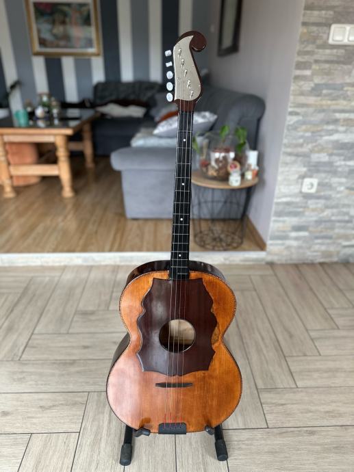 Prodajem staru E kontru, kompletno renovirana, nema nikakvog dodatnog ulaganja u nju, napravljena od ptićjeg javora, kvalitetna glasnjača, radi perfektno, zvuk perfektan, ima šus, mekana za sviranje, uz tamburu dolazi i kofer, u tamburi piše da je napravljena (ili popravljana 1962. godine