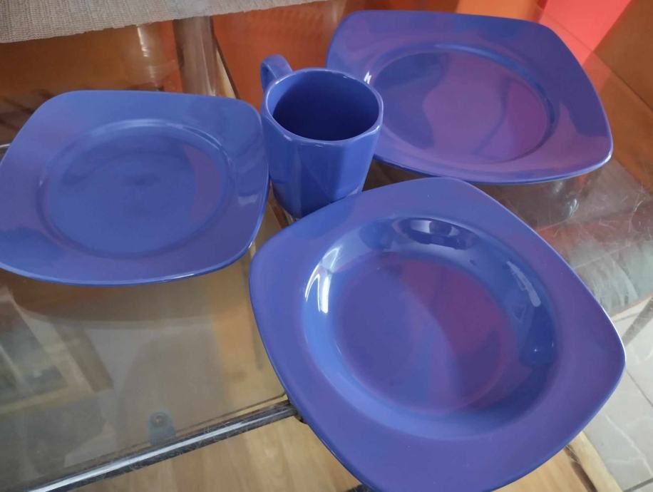 novi,nikad korišteni 24 dijelni set tanjura sa šalicama od keramike...sadrži 6 plitkih,6 dubokih i 6 desertnih tanjura sa 6 šalica za čaj,kavu i slično.