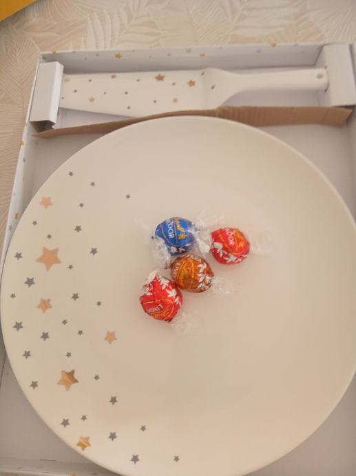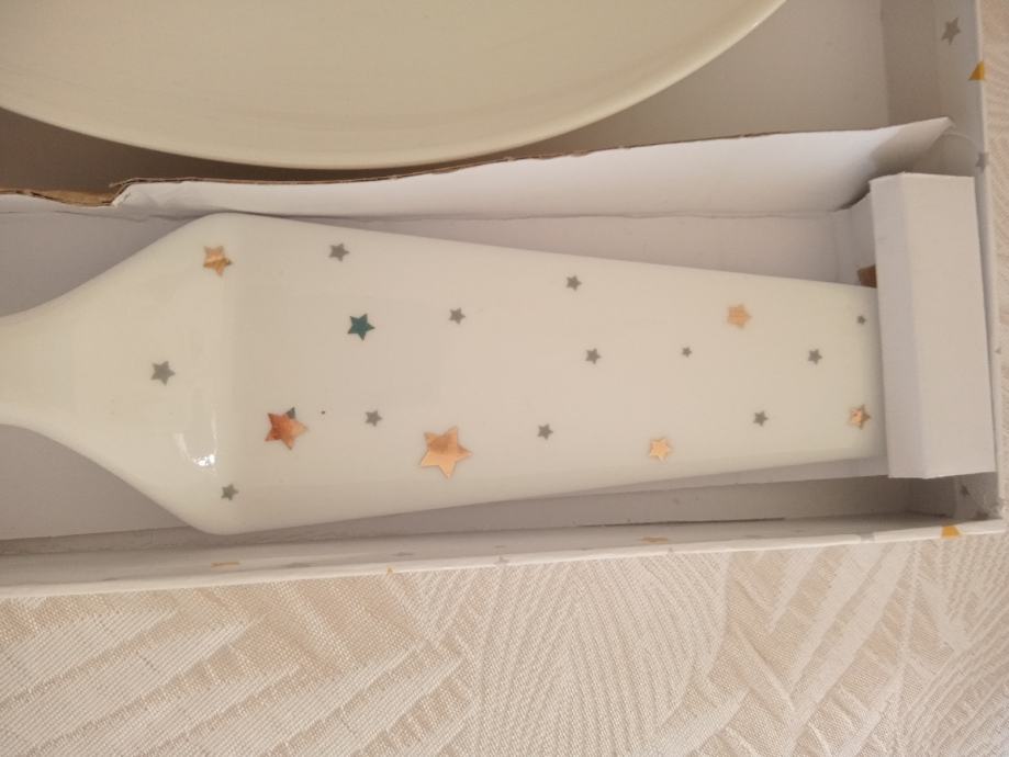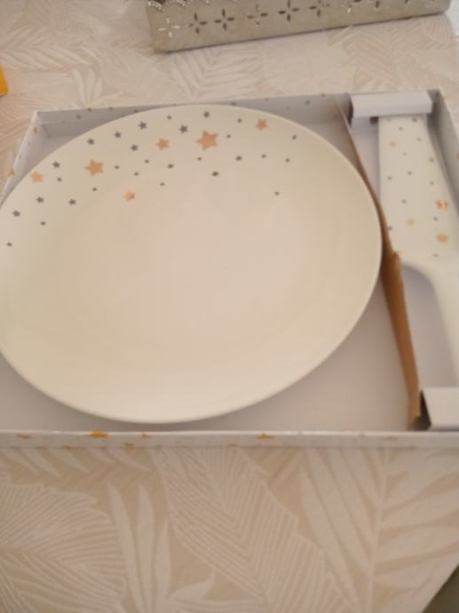 Božićni porculanski tanjur sa zvijezdicama za torte i kolače lopaticom