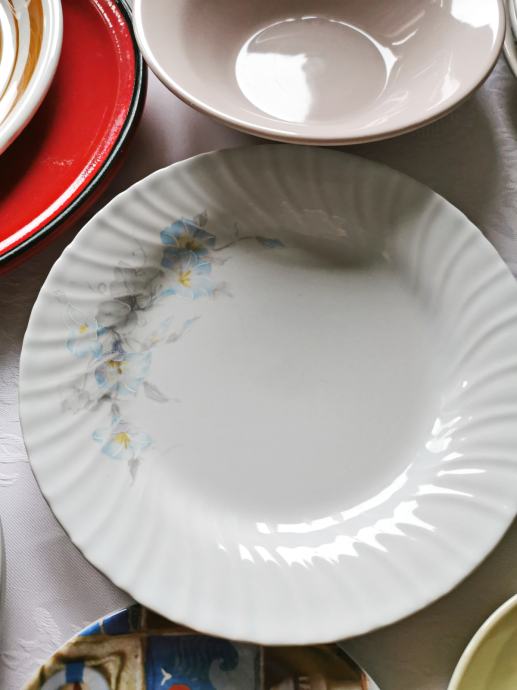 3. Plitki desertni tanjur, plavi cvjetovi, tri komada, sva tri 2 eura.