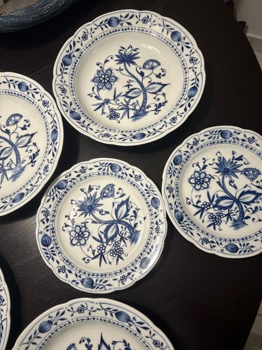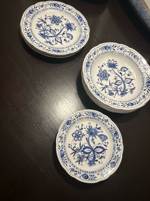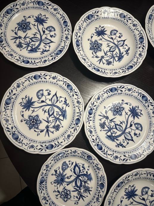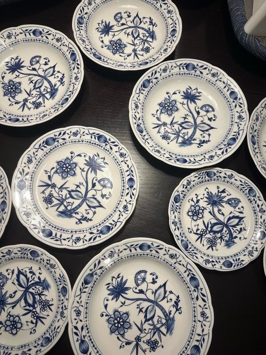 Na prodaju set tanjura poznate njemačke marke KAHLA, uzorak Zwiebelmuster (Plavi luk / Onion pattern), kupljeni 1965. godine.