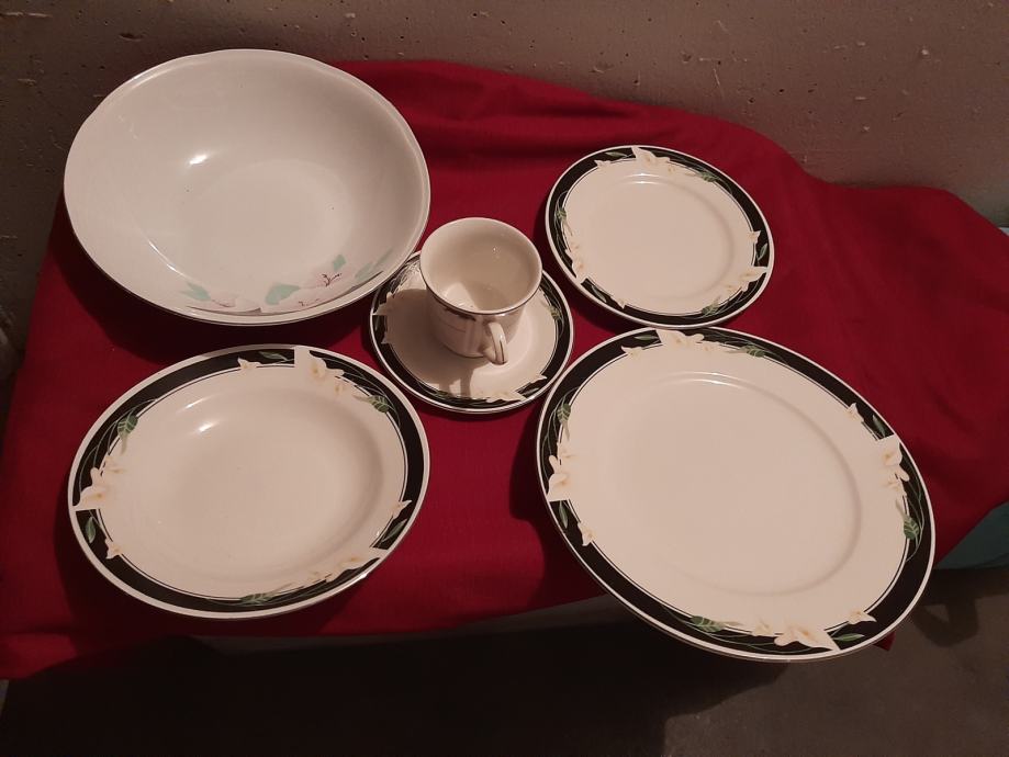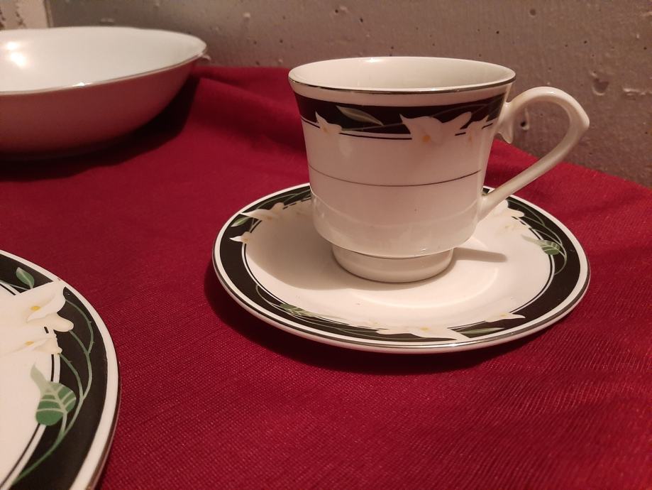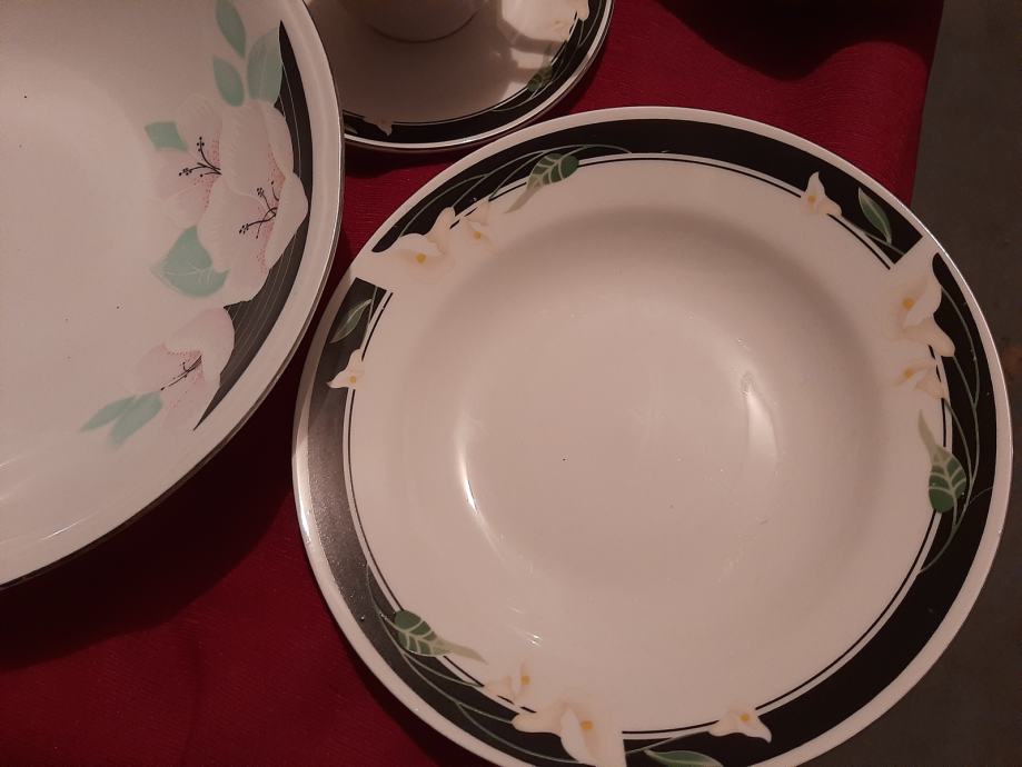 Set od 6 kom plitkih, dubokih i desertnih tanjura, 6 šalica za kavu sa tanjurićima, 1 zdjela