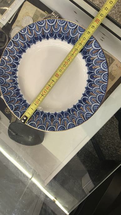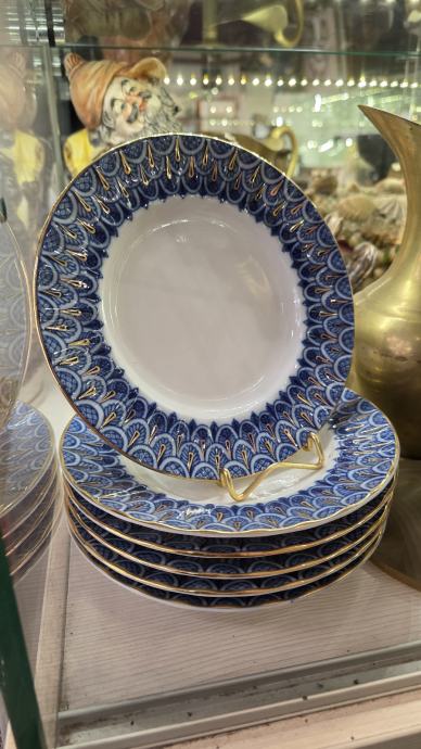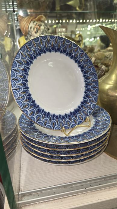 Prodajem set od 6 porculanskih tanjura proizvođača Lomonosov, izrađenih u USSR-u. Tanjuri su ukrašeni prepoznatljivim plavim uzorkom s pozlatom koji je karakterističan za Lomonosov porculan. Stanje je novo.