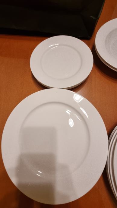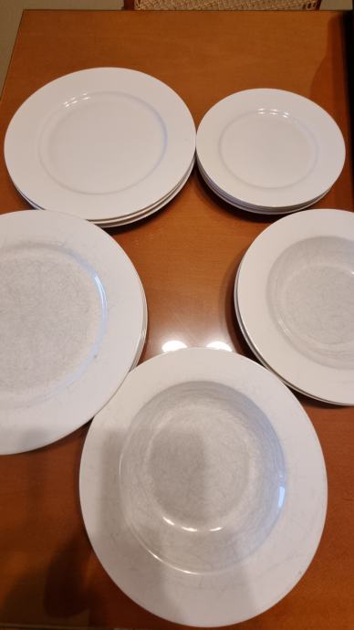 Prodajem 10 velikih plitkih, 11 malih plitkih i 11 dubokih tanjura. Stanje vidljivo na slikama. Neki su novi, a na nekima su tragovi korištenja (mogu se izribati Pink pastom). Mehrzer porculan.