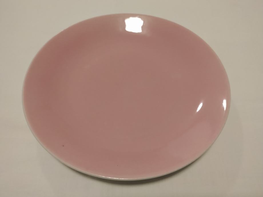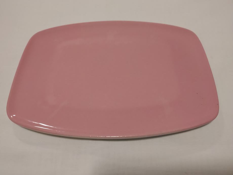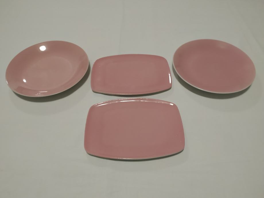 Prodajem komplet od četiri (4) mala porculanska tanjura (dva okrugla, dva približno pravokutna) modernog dizajna roza boje iz 60-ih godina 20. st. proizvođača "Lilien" (Austrija).