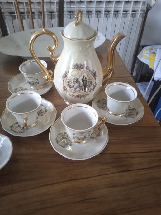 Set za kavu 4 šalice s tanjurićima i čajnik