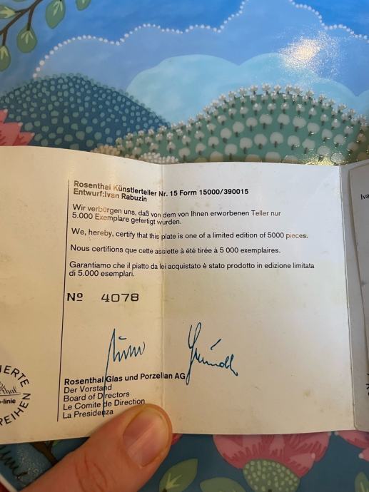 Prodajem kolekcionarski servis Rosenthal Rabuzin koji je desetljećima bio dio obiteljskog nasljeđa. Servis je bez oštećenja, bez znakova korištenja jer nije bio ni korišten. Servis se sastoji od jušnika i 11 zdjelica za juhu sa pripadajućim tanjurićima. Servisu pripada i kolekcionarski tanjur. U servisu je bila i vaza koja se vidi ka fotografiji i koja je prilikom seljenja u Zagreb pukla i nije na prodaju.