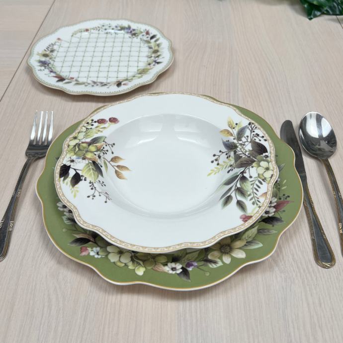 Prekrasan cvjetni dekor "Flora Lux" - nježan i sofisticiran uzorak unosi svježinu i ljepotu na svaki stol – savršen za svečane i svakodnevne trenutke.