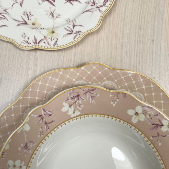 SERVIS ZA JELO ELEGANZA 18 DIJELNI NEW BONE DEKORIRANI - VALOVITI RUB