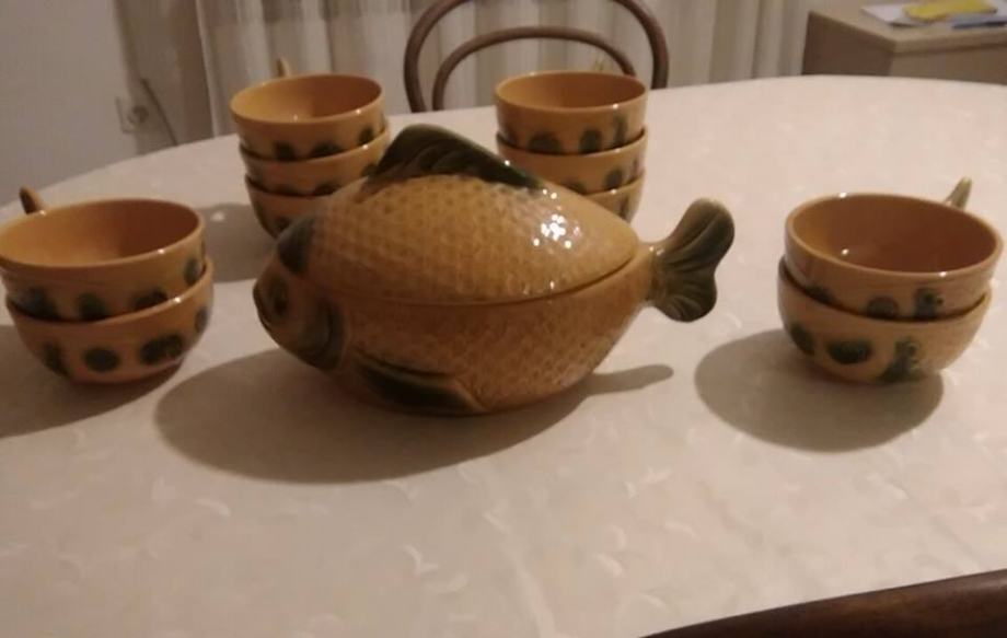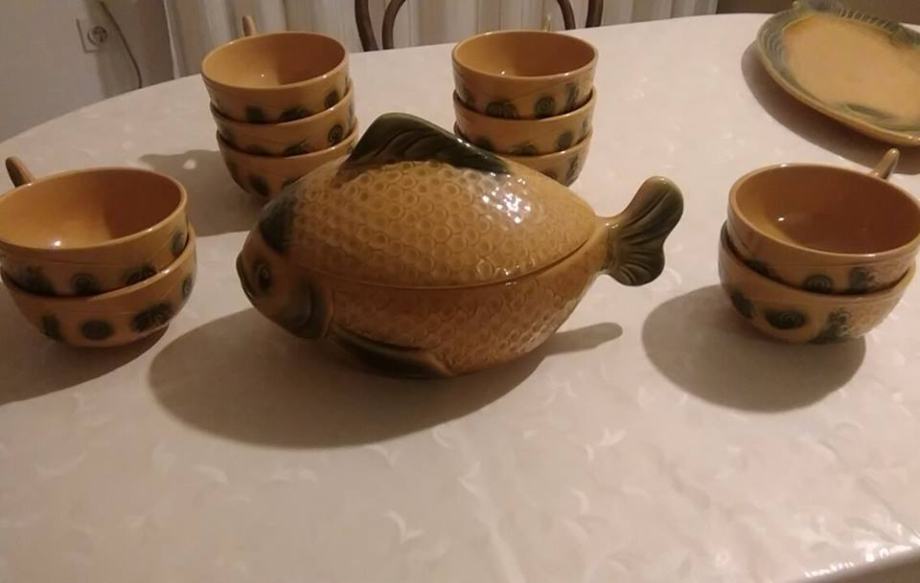 Servis za juhu (velika zdjela s otvorom za šeflju i 12 zdjelica u obliku ribe)...350kn