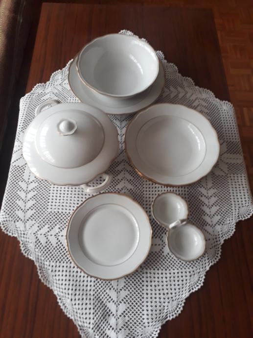 Klasični jedaći servis za 6 osoba, porculan (Njemačka): 18 tanjura, zdjela za juhu,