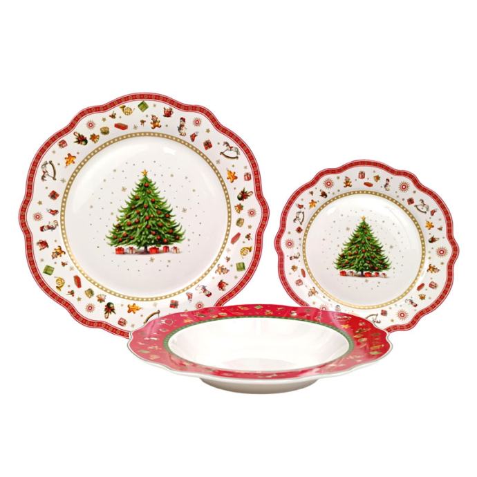 Ovaj set kombinira klasičan dizajn i svečan izgled, savršen za stvaranje ugodne atmosfere tijekom božićnih blagdana.