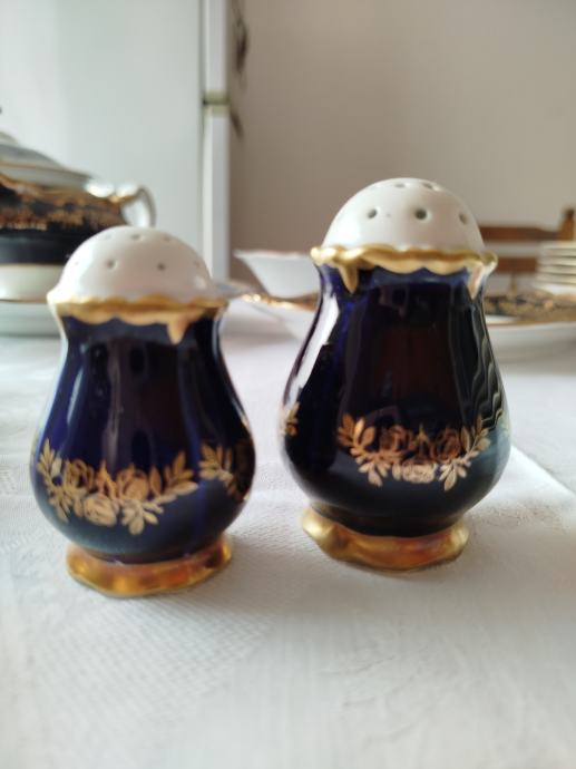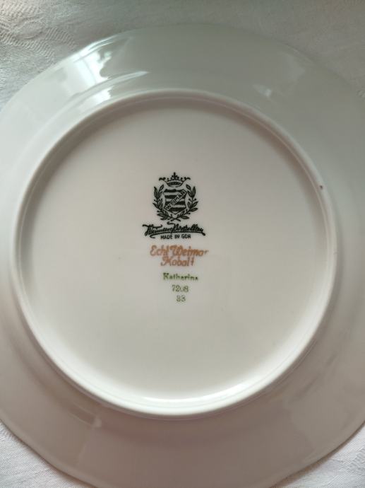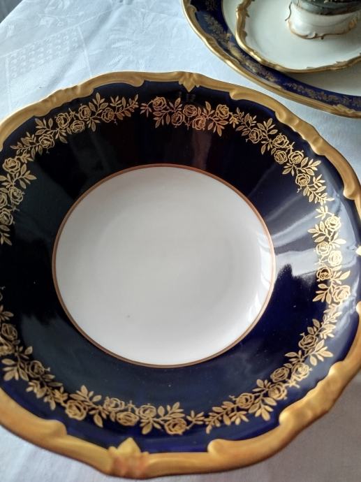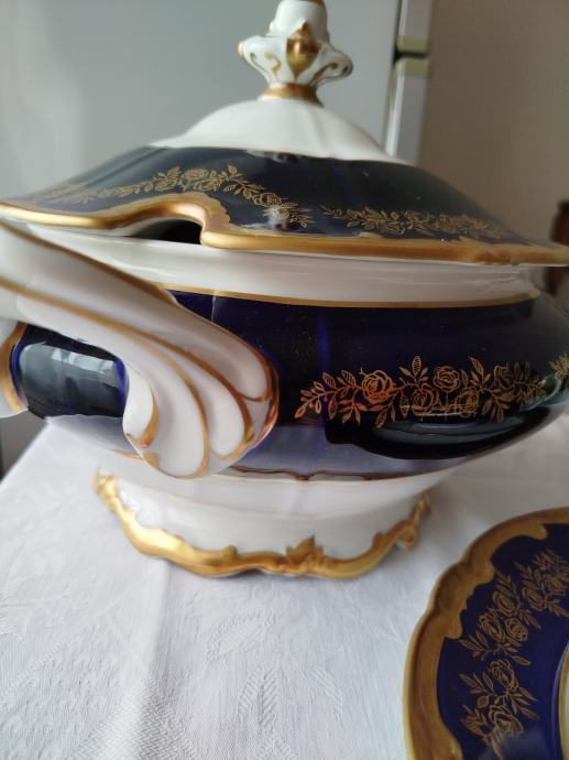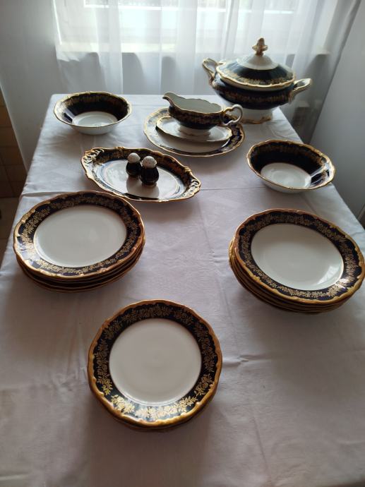 Posuđe nije korišteno. Sastoji se od 26 dijelova. Kobalt, pozlata, proizvođač Weimar.