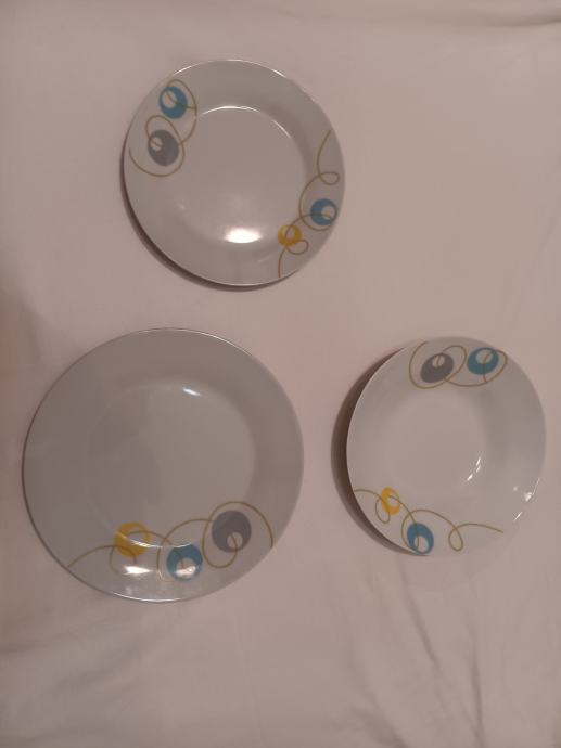 Prodajem set 18 tanjura, 6 dubokih, 6 plitkih i 6 manjih tanjura. Novi, nekorišteni, zapakirani u original kutiju.
